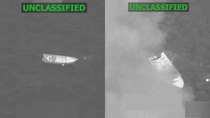 Las fuerzas armadas no aportaron evidencia de que la embarcación estuviera transportando drogas. Publicaron un video en X en el que se ve una pequeña embarcación seguida de una enorme explosión y humo saliendo del bote.