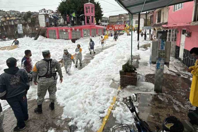 La zona se cubrió con espuma mezcla de residuos industriales, detergentes y otros contaminantes que evidencian fallas en el tratamiento de aguas residuales en la zona.