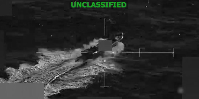 Las Fuerzas Armadas estadounidenses acompañaron la publicación del ataque con un video donde se observa a una embarcación en movimiento que resulta impactada.
