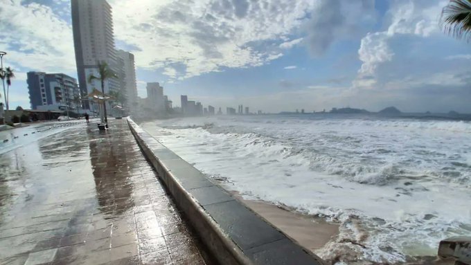 En Sinaloa, las playas de Mazatlán fueron cerradas de manera preventiva debido al fuerte oleaje. Personal de rescate acuático mantiene recorridos permanentes para evitar accidentes y garantizar que la población respete las restricciones.