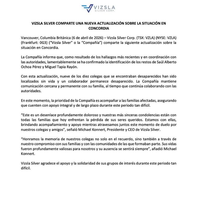 En un comunicado, la empresa canadiense informó que, como resultado de los hallazgos más recientes y en coordinación con las autoridades, “lamentablemente se ha confirmado la identificación de los restos de Saúl Alberto Ochoa Pérez y Miguel Tapia Rayón”.