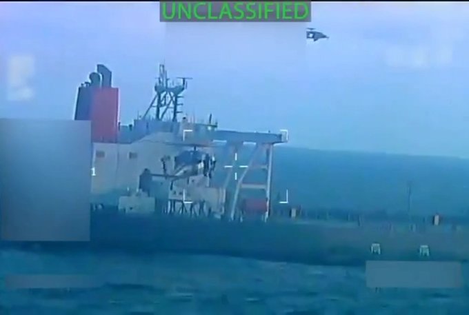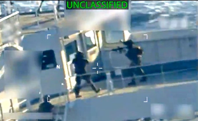 La publicación está acompañada de un video en el que se ve a un grupo de militares abordar el buque desde helicópteros.