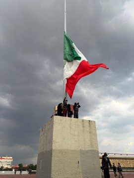 La Bandera Nacional instalada frente a Rectoría fue bajada a media asta por los manifestantes a manera de luto y protesta.