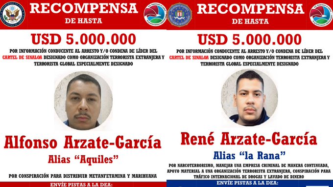 El Departamento de Estado de Estados Unidos anunció una recompensa de hasta 10 millones de dólares por información que conduzca al arresto o condena de dos hermanos identificados como operadores del cártel de Sinaloa en Tijuana.